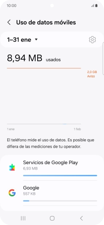 Puedes ver cuántos datos móviles has utilizado, por ejemplo, cuando has utilizado el navegador de Internet o cuando has enviado y recibido correo electrónico.