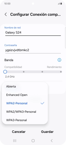 Pulsa WPA3-Personal para proteger la conexión wifi con una contraseña.