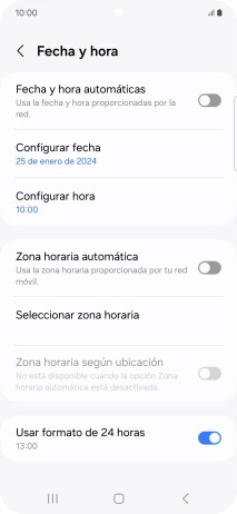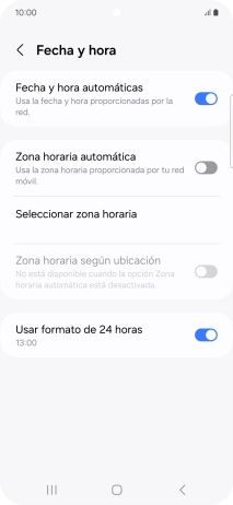 Pulsa el indicador junto a "Fecha y hora automáticas" para activar la función.