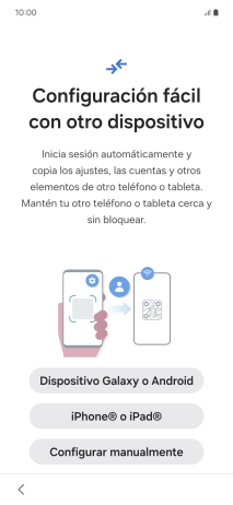 Pulsa la opción deseada para transferir contenido desde otro dispositivo y pulsa Configurar manualmente.