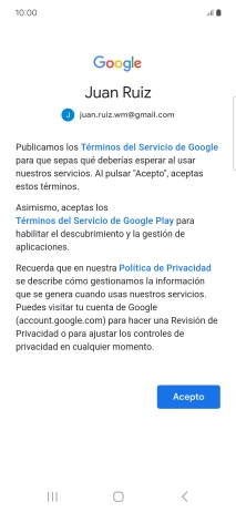 Pulsa Acepto y sigue las indicaciones de la pantalla para seleccionar los ajustes de tu cuenta de Google.