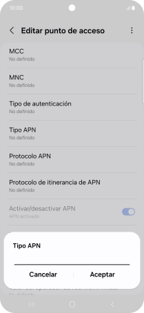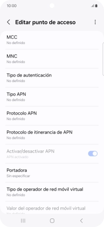 Configura el APN del Samsung Galaxy S24 FE Android 14 para Internet.