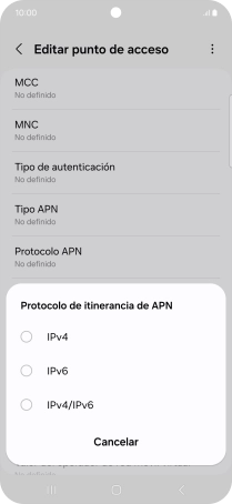 9. Selecciona el protocolo del punto de acceso (APN) en roaming
