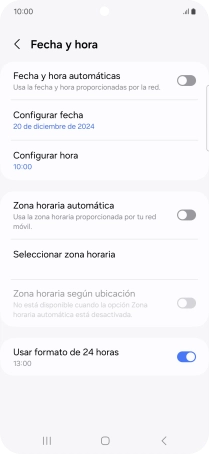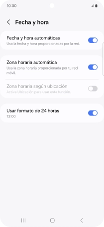 Pulsa el indicador junto a "Fecha y hora automáticas" para activar la función.