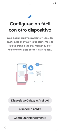 Pulsa la opción deseada para transferir contenido desde otro dispositivo y pulsa Configurar manualmente.