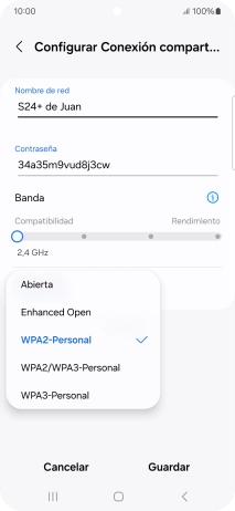 Pulsa WPA3-Personal para proteger la conexión wifi con una contraseña.