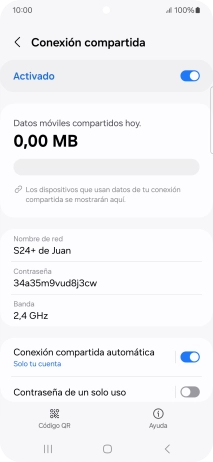 Pulsa el indicador bajo "Conexión compartida" para activar la función.