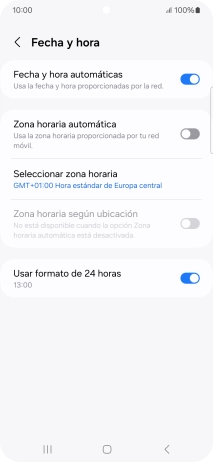 Pulsa el indicador junto a "Fecha y hora automáticas" para activar la función.