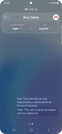 Puedes mantener una conversación telefónica con otra persona en dos idiomas diferentes, mientras el teléfono traduce por escrito vuestra conversación. Para poder utilizar la función, tienes que activar "Traducción simultánea" en los Ajustes del teléfono.