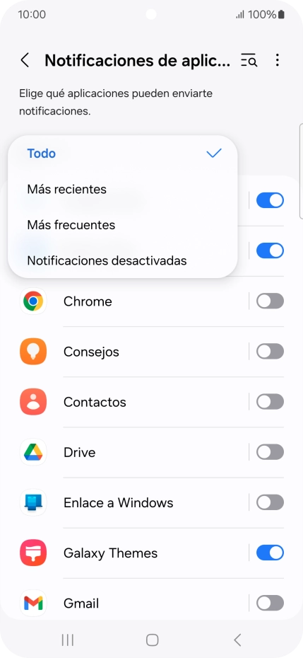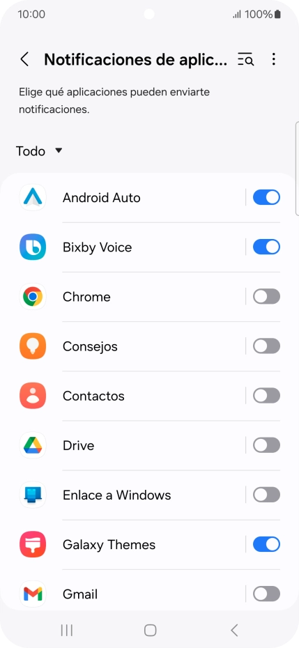 Pulsa el indicador junto a las apps deseadas para activar o desactivar la función.