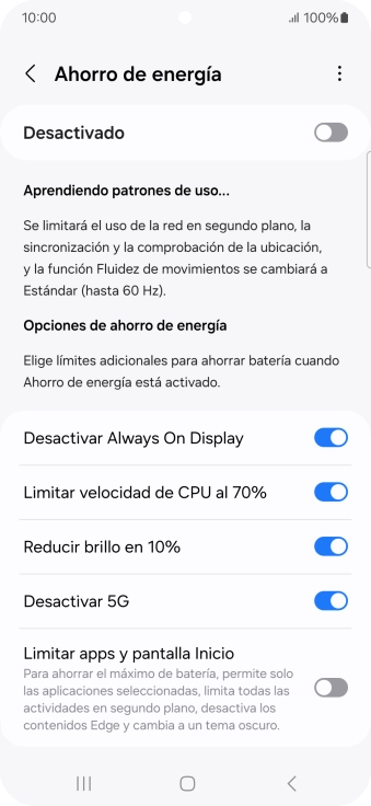 Pulsa el indicador bajo "Ahorro de energía" para activar la función.