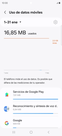 Puedes ver cuántos datos móviles has utilizado, por ejemplo, cuando has utilizado el navegador de Internet o cuando has enviado y recibido correo electrónico.