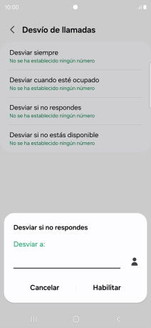Puedes desviar al contestador las llamadas entrantes en estas situaciones: siempre, solo cuando estés ocupado, solo cuando no respondas o solo cuando estés no disponible.