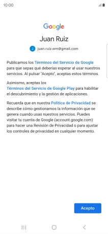 Pulsa Acepto y sigue las indicaciones de la pantalla para seleccionar los ajustes de tu cuenta de Google.
