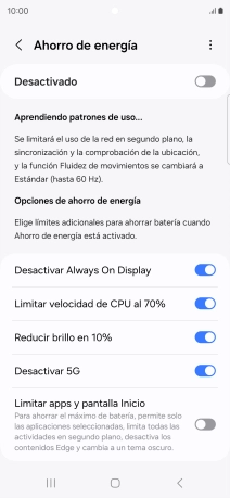 Pulsa el indicador bajo "Ahorro de energía" para activar la función.