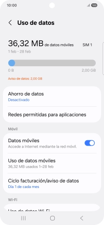 Puedes ver cuántos datos móviles has utilizado, por ejemplo, cuando has utilizado el navegador de Internet o cuando has enviado y recibido correo electrónico.