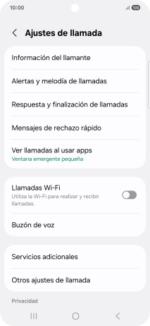 Pulsa el indicador junto a "Llamada en espera" para activar o desactivar la función.