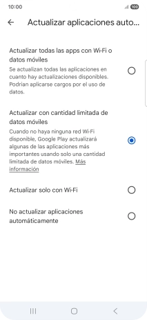 Para activar la actualización automática de apps a través de wifi, pulsa Actualizar solo con Wi-Fi.