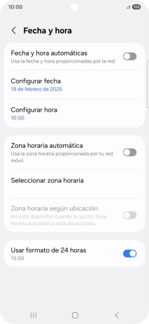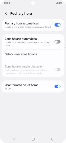 Pulsa el indicador junto a "Fecha y hora automáticas" para activar la función.
