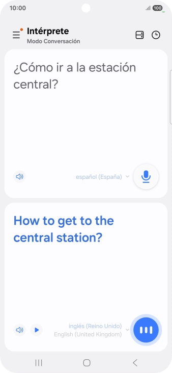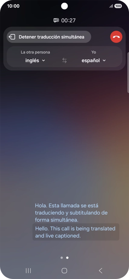 Puedes mantener una conversación telefónica con otra persona en dos idiomas diferentes, mientras el teléfono traduce por escrito vuestra conversación. Para poder utilizar la función, tienes que activar "Traducción simultánea" en los Ajustes del teléfono.