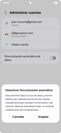Pulsa el indicador junto a "Sincronización automática de datos" para activar o desactivar la función.
