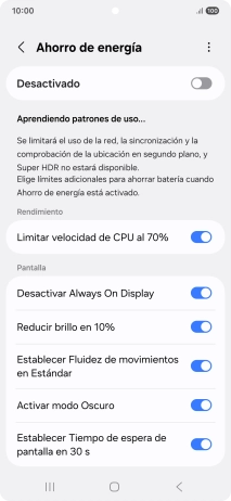 Pulsa el indicador bajo "Ahorro de energía" para activar la función.