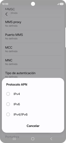 9. Selecciona el protocolo del punto de acceso (APN) en roaming
