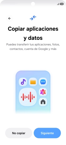 Pulsa el ajuste deseado y sigue las instrucciones de la pantalla para transferir el contenido del otro teléfono.
