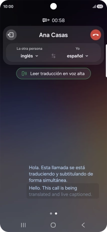 Puedes mantener una conversación telefónica con otra persona en dos idiomas diferentes, mientras el teléfono traduce por escrito vuestra conversación. Para poder utilizar la función, tienes que activar "Traducción simultánea" en los Ajustes del teléfono.