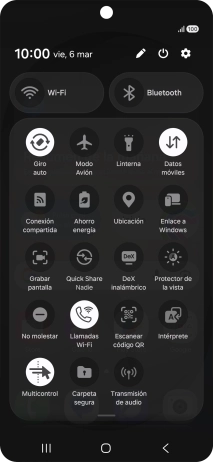 Desliza el dedo hacia abajo desde la esquina superior derecha de la pantalla para utilizar Galaxy AI para traducir una conversación.