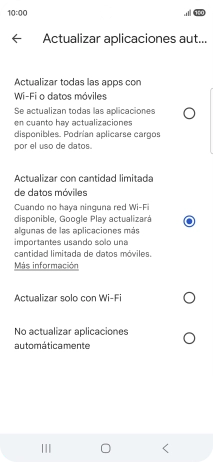 Si activas la actualización de apps con datos limitados a través de la red móvil, se actualizarán tus apps de forma automática utilizando la red móvil cuando la red wifi no esté al alcance.