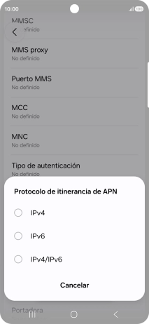 9. Selecciona el protocolo del punto de acceso (APN) en roaming