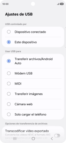 2. Selecciona el ajuste de la conexión USB