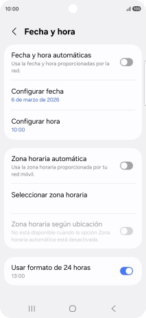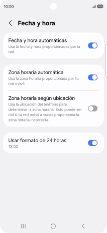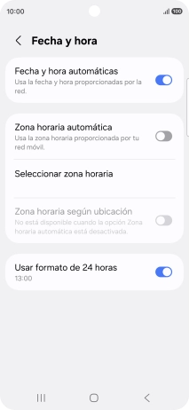 Pulsa el indicador junto a "Fecha y hora automáticas" para activar la función.