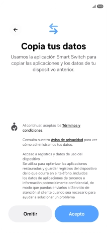 Pulsa el ajuste deseado y sigue las instrucciones de la pantalla para transferir el contenido del otro teléfono.