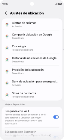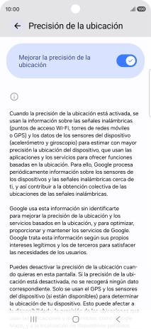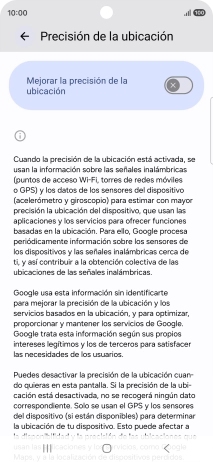 Si pulsas el indicador junto a "Mejorar la precisión de la ubicación" para desactivar la función, el teléfono podrá encontrar tu posición exacta con ayuda de los satélites GPS, pero le llevará más tiempo ya que no tiene acceso a informaciones complementarias de la red móvil o una red wifi cercana.