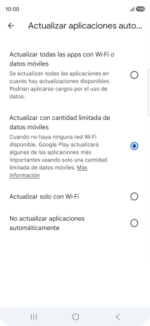 Si activas la actualización de apps con datos limitados a través de la red móvil, se actualizarán tus apps de forma automática utilizando la red móvil cuando la red wifi no esté al alcance.