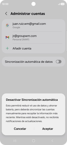 Pulsa el indicador junto a "Sincronización automática de datos" para activar o desactivar la función.