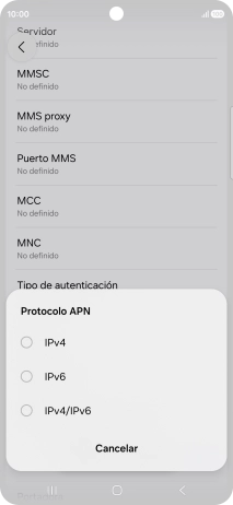8. Selecciona el protocolo del punto de acceso (APN)