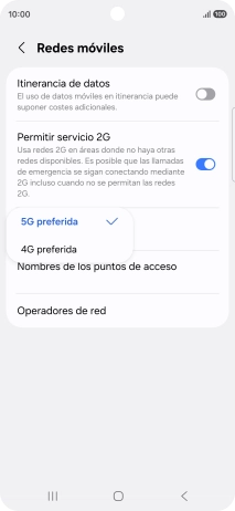 Puede haber diferentes tipos de red disponibles, dependiendo del lugar donde te encuentres. Si seleccionas la conexión automática con la red de mayor velocidad, tu teléfono siempre se conectará a la red de mayor velocidad disponible en cada momento.