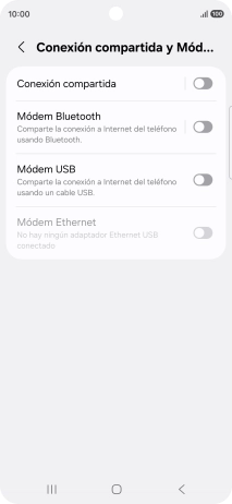 Pulsa Conexión compartida y Módem.