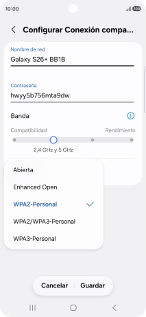 Pulsa WPA3-Personal para proteger la conexión wifi con una contraseña.