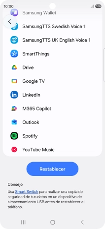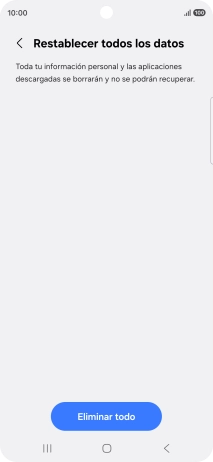 Pulsa Eliminar todo. Espera unos instantes mientras el teléfono restablece la configuración predeterminada. Sigue las indicaciones de la pantalla para configurar el teléfono y dejarlo listo para su uso.