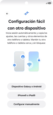 Pulsa la opción deseada para transferir contenido desde otro dispositivo y pulsa Configurar manualmente.