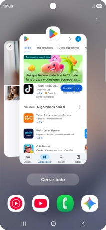 Para cerrar una sola aplicación en ejecución, desliza el dedo hacia arriba sobre la aplicación deseada.