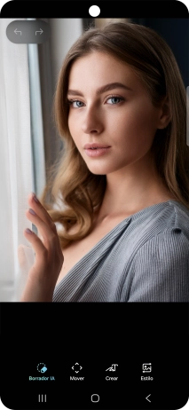 Si deseas eliminar elementos de una fotografía, pulsa Borrador IA y sigue las indicaciones de la pantalla para utilizar la función.