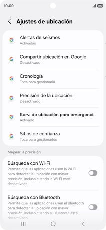Si pulsas el indicador junto a "Mejorar la precisión de la ubicación" para desactivar la función, el teléfono podrá encontrar tu posición exacta con ayuda de los satélites GPS, pero le llevará más tiempo ya que no tiene acceso a informaciones complementarias de la red móvil o una red wifi cercana.