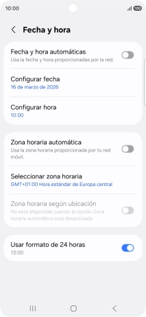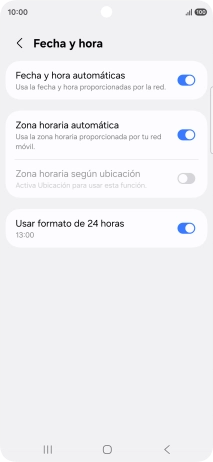 Pulsa el indicador junto a "Fecha y hora automáticas" para activar la función.