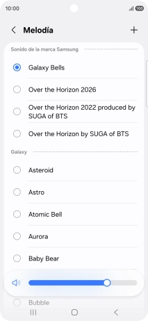 Si deseas seleccionar un timbre de llamada que no sea un timbre de llamada predeterminado, pulsa el icono de añadir timbre de llamada y sigue las indicaciones de la pantalla para seleccionar la melodía deseada.
