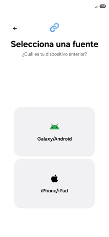 Pulsa el ajuste deseado y sigue las instrucciones de la pantalla para transferir el contenido del otro teléfono.